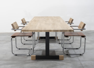4 Chaises Gevers CG73 Chêne, cuir cognac RELATED PROJECT Jules Wabbes table à pan coupé 1970 Mobilier Universel Sofa Jules Wabbes Edition Mobilier Universel 1960 Christophe Gevers